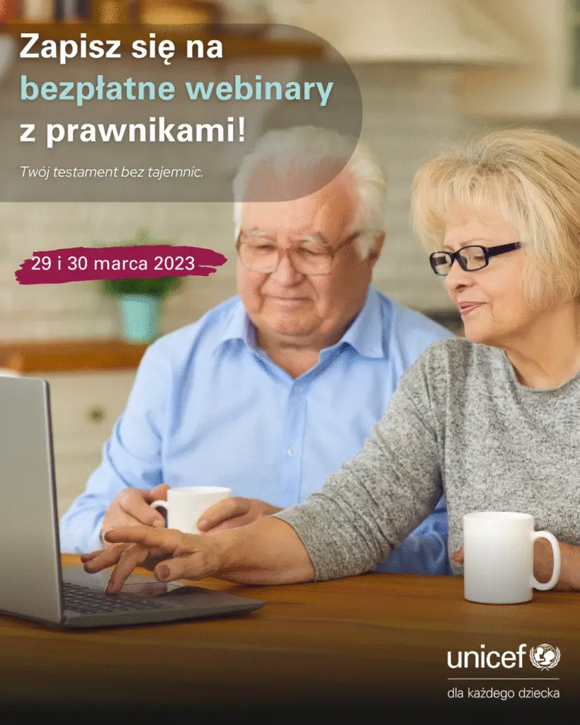 Wraz z UNICEF Polska zapraszamy na webinar poświęcony prawu spadkowemu. Dowiesz się, jak działa ustawa o dziedziczeniu, jak sporządzić testament i kogo można w nim uwzględnić.